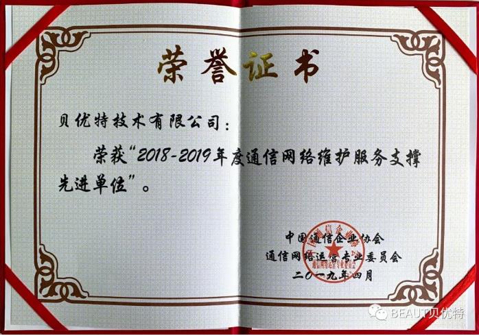 今天是黨的生日,在這個特別的日子,公司喜獲由中國通信企業協會、中國通信網絡運營專業委員會頒發的”2018-2019年度網絡維護服務支撐先進單位“的榮譽獎牌及證書。